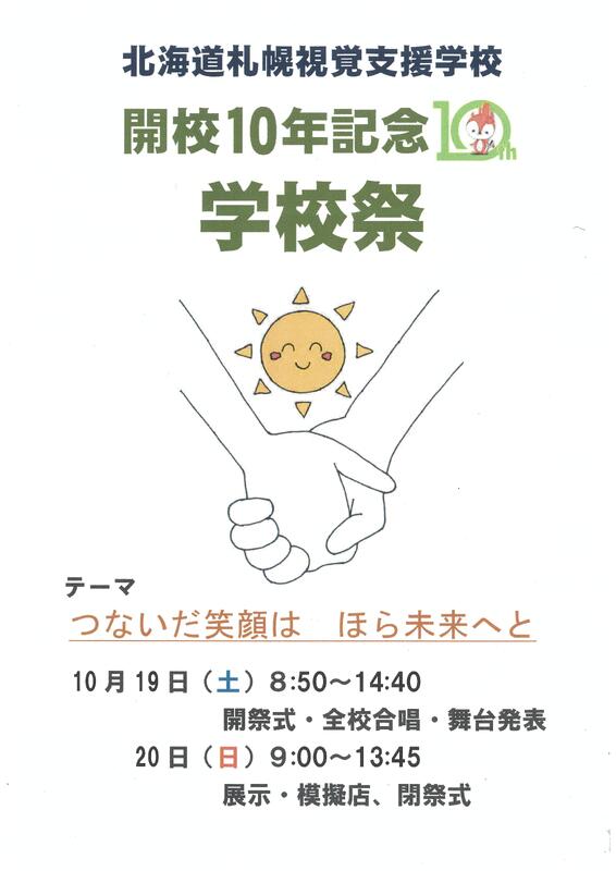 10月19日(土)・20日(日)の2日間、開校10年記念学校祭を開催します。今年のテーマは「つないだ笑顔は ほら未来へと」です。開校10年の歴史とこれからも明るい未来になるよう願いを込めています。