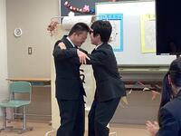 「卒業生に挑戦」コーナーでは、3年生が得意なことに在校生が挑戦し、イントロ対決、お絵かき対決、面白い音出し対決、ものまね対決、そして、帽子作り対決と、大いに盛り上がりました。続いて、在校生から卒業生一人一人に、メッセージに記念写真も添えられたメモリアルブックが手渡されました。最後に卒業生からは、在校生や教職員に向けたメッセージビデオも上映され、参加者全員で3年間の思い出を振り返りながら、卒業を祝うことができました。